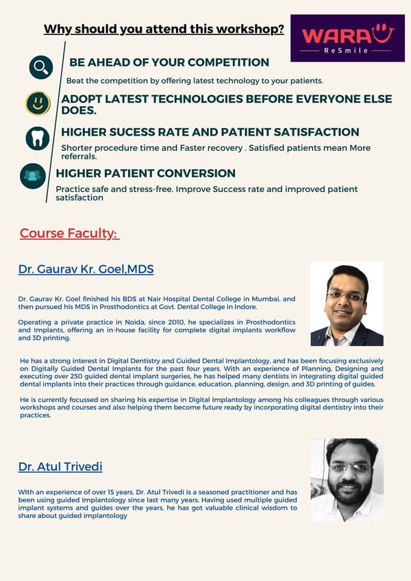 He is currently focussed on sharing his expertise in Digital Implantology among his colleagues through various workshops and courses and also helping them become future ready by incorporating digital dentistry into their practices.